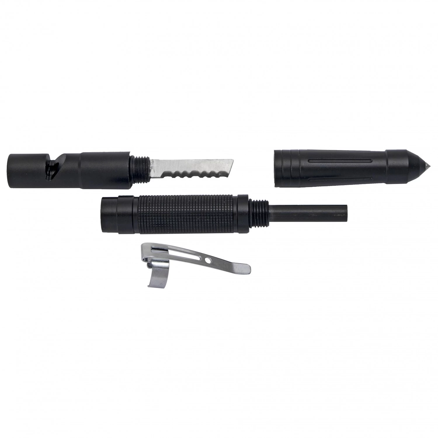 Funktionen im Überblick:– Nothammer für Autoglas- Notfallpfeife- Zündstahl – Säge