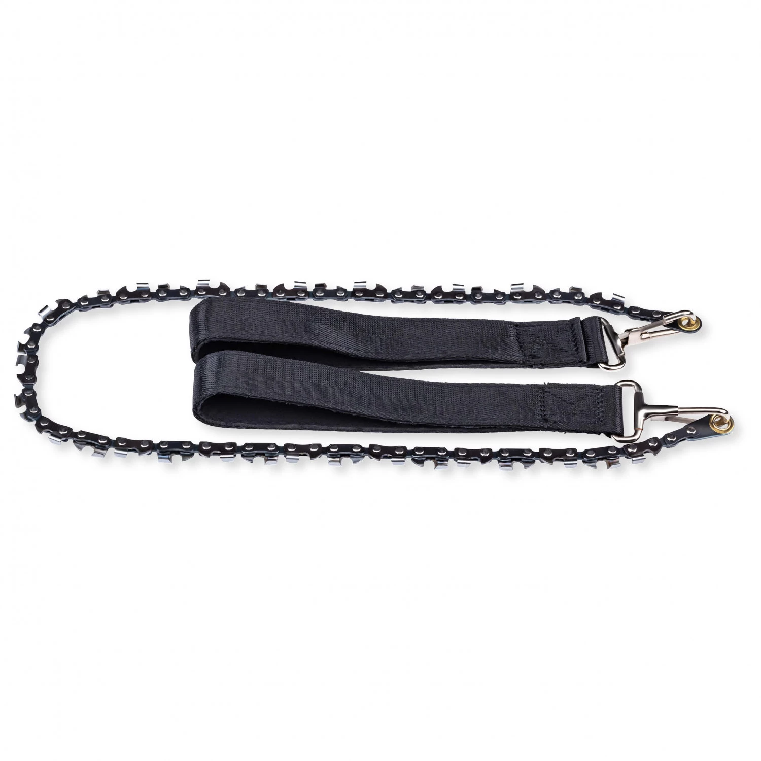 An dieser robusten Handkettensäge aus dem Hause Herbertz wirst Du zu Hause, beim Camping oder in der Wildnis Deine helle Freude haben. Nur mit Muskelkraft kannst Du starke Äste oder kleine Bäume zu Fall bringen. Die mit zwei gepolsterten Handschlaufen ausgestattete Kette verfügt über Manganstahl-Sägezähne, welche sich bei jeder Zugrichtung ins Holz fressen. Dank der praktischen Karabinerverbindung zwischen Kette und Schlaufen kannst Du mit wenigen Hangriffen auch ein langes Zugseil zum Entfernen hoch gewachsener Äste montieren. Die Säge wird in einem praktischen, schwarzen Kunststoff Gürteletui geliefert.