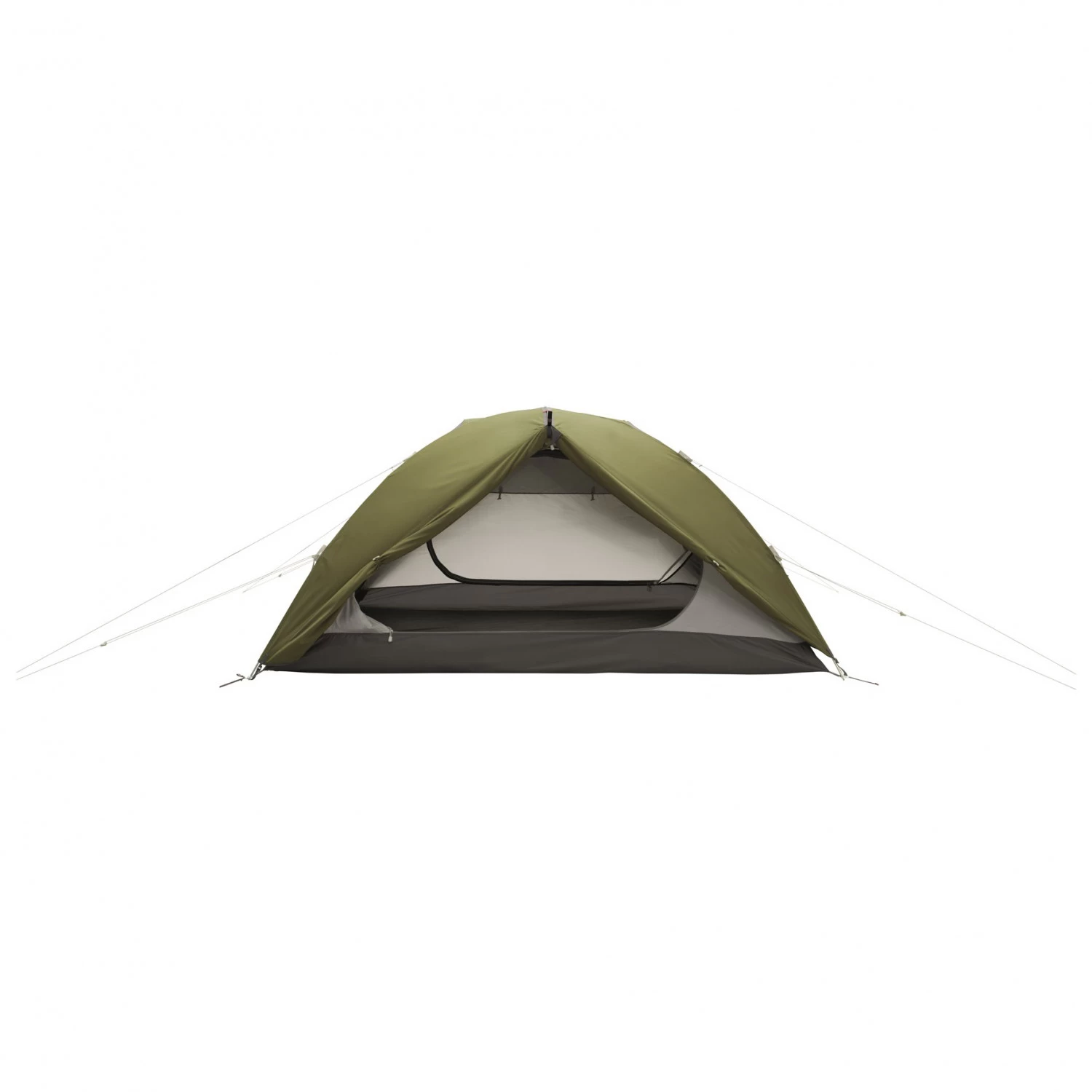 Der Innenraum bietet Platz für zwei Camper und eine ordentliche Deckenhöhe mit guter Kopffreiheit. Die beiden Zelteingänge ermöglichen jedem Zeltbewohner einen separaten Einstieg und jeweils einen Vorraumbereich, der auch gleichzeitig als kleiner Stauraum dient. Die Zelttüren können vielseitig geöffnet und bei Bedarf seitlich verstaut werden. Regulierbare Ventilationsöffnungen ermöglichen eine gute Luftzirkulation und verhindern, dass sich Kondensnässe im Zeltinneren bildet. Moskitonetze am Innenzelt verwehren winzigen Blutsaugern den Eintritt, leuchtende Reißverschluss-Schlaufen erleichtern die Orientierung bei Dunkelheit und der mitgelieferte Packsack steckt das Zelt platzsparend für Transport oder Lagerung weg. Klasse!